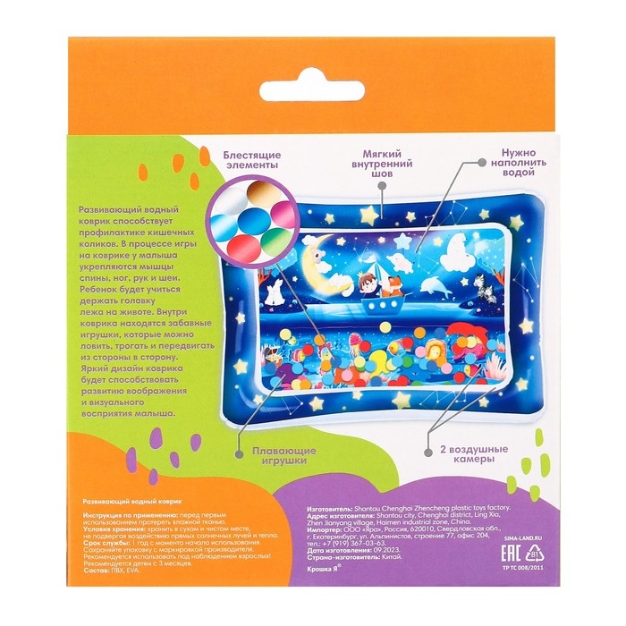 Акваковрик надувной развивающий водный коврик «Волшебная ночь», 80х50 см, Крошка Я