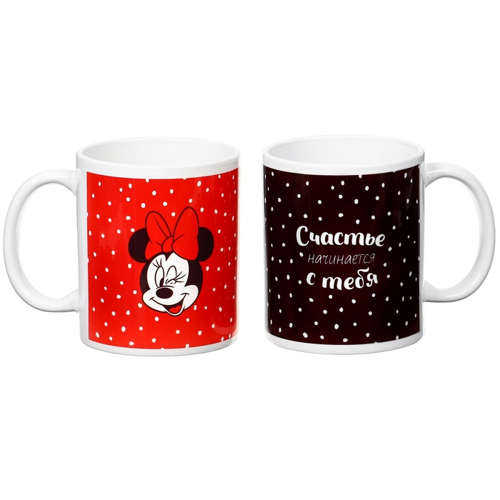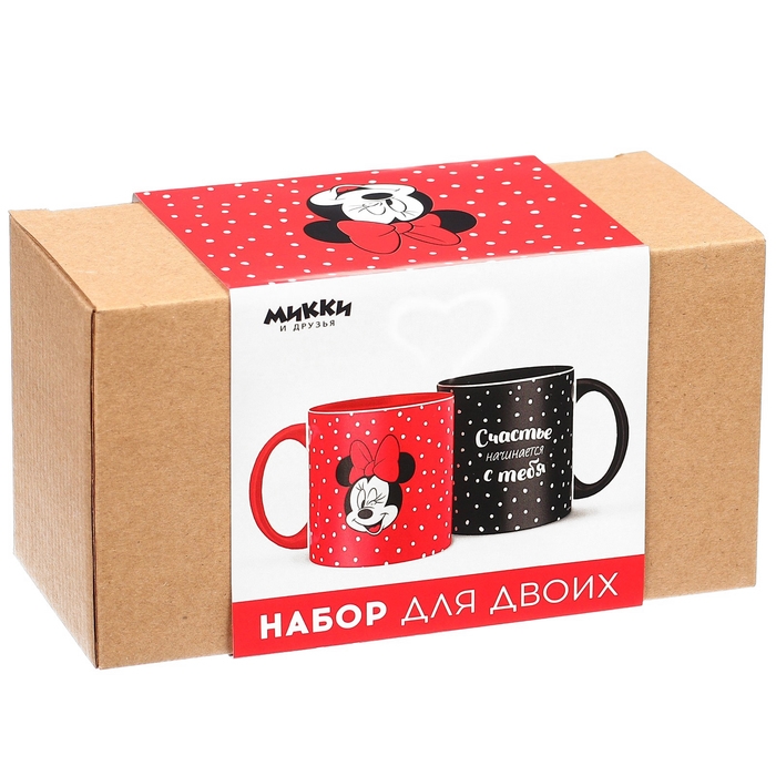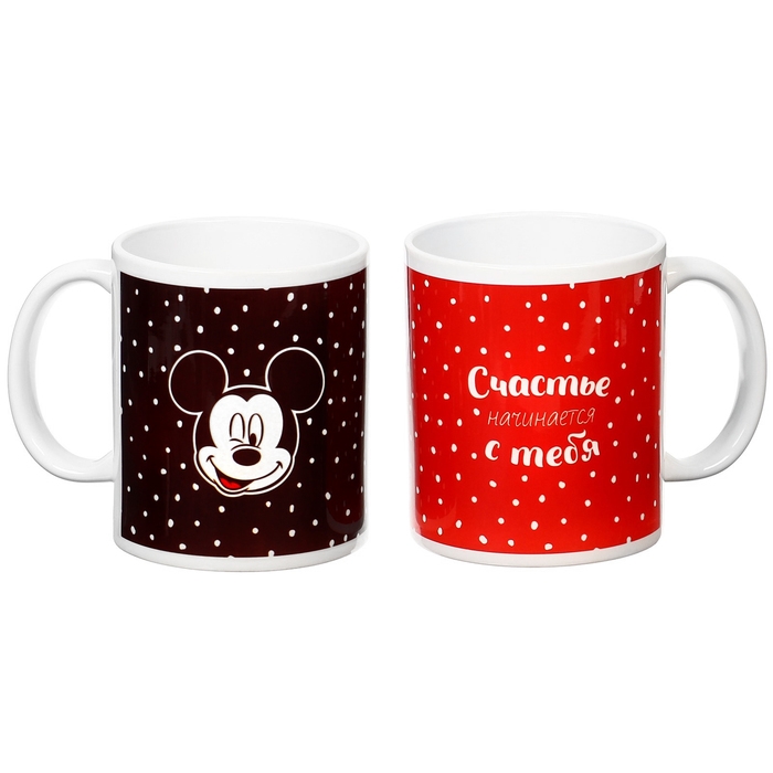 Набор парных кружек, 320 мл "Счастье начинается с тебя", Микки и друзья
