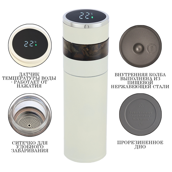 Термос-заварник, 420 мл, с термометром, сохраняет тепло до 12 ч, белый