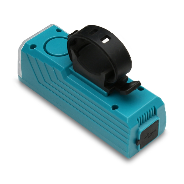 Фонарь удобно крепится на руль велосипеда с помощью силиконового зажима.