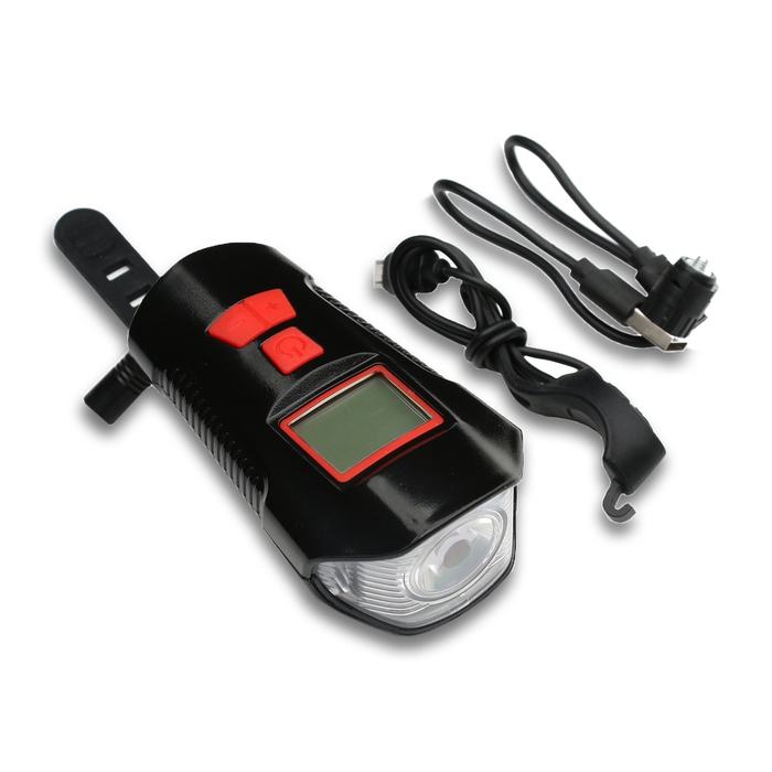 Мощный светодиодный велофонарь снабжен гудком, спидометром и дисплеем с подсветкой. Это качественное и многофункциональное устройство благодаря сочетанию в себе велофары, сигнала и бортового компьютера.