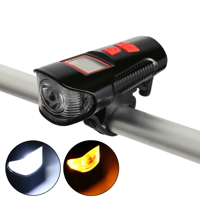 Фонарь велосипедный передний аккумуляторный, водонепроницаемый, 4 режима, сигнал, спидометр