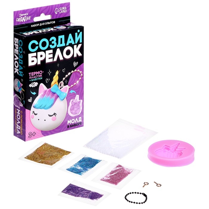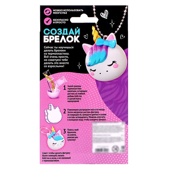 Набор для опытов «Волшебный пластик: Единорог» поможет ребёнку раскрыть свои творческие способности и слепить свой собственный брелок.