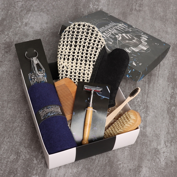 Бритвенный станок, Варежка-мочалка, Зубная щётка, Полотенце, Принадлежности для маникюра, Расчёска для волос, Щётка