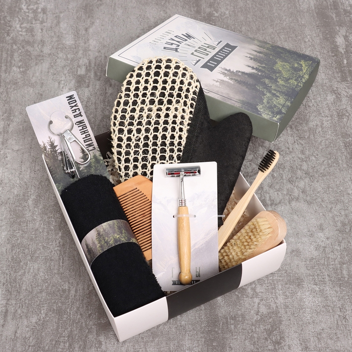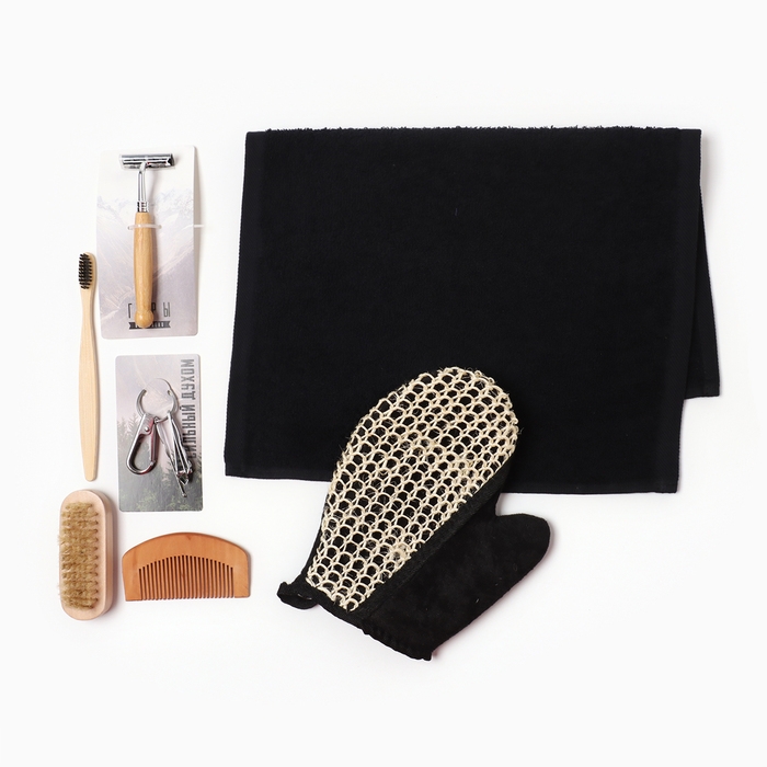 Бритвенный станок, Варежка-мочалка, Зубная щётка, Полотенце, Принадлежности для маникюра, Расчёска для волос, Щётка
