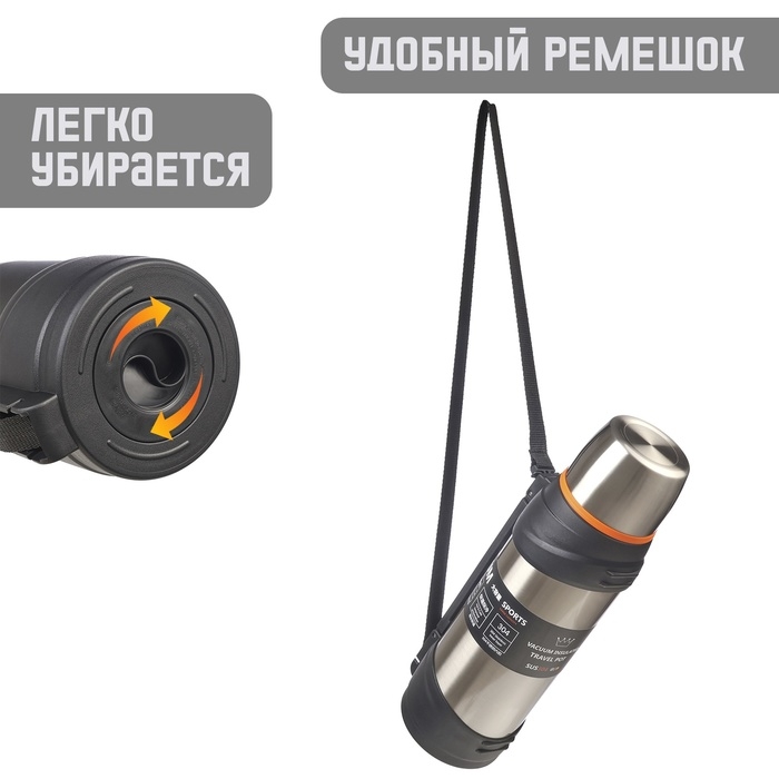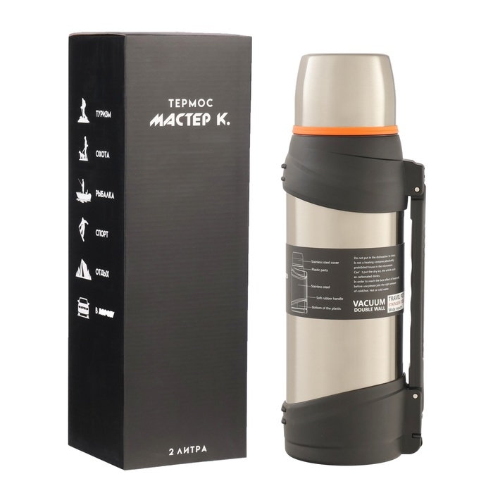 Термос, 2 л, Тропа "Мастер К", с кружкой, сохраняет тепло до 12 ч