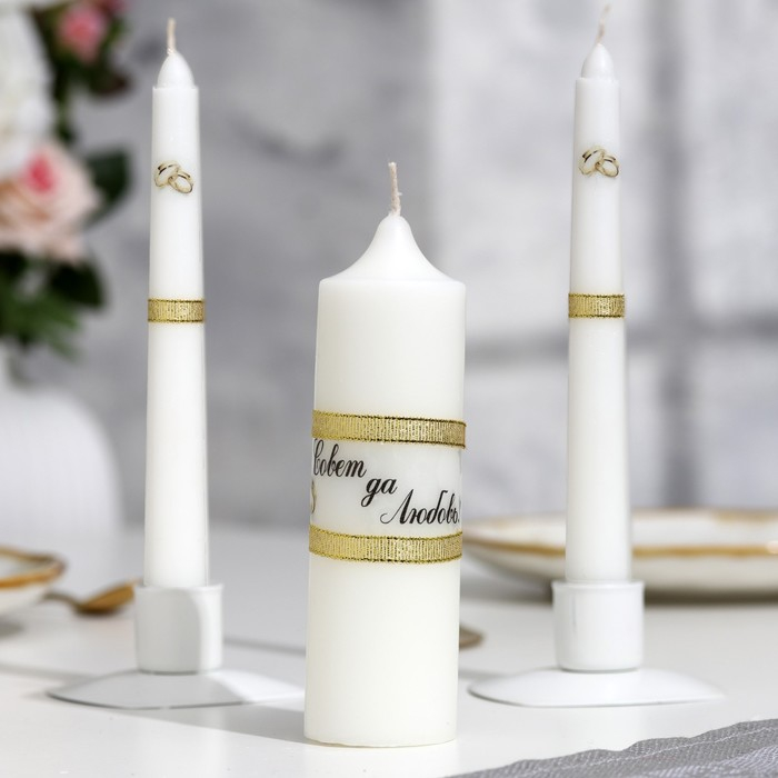 Набор свадебных свечей "Совет да любовь" белый: родительские 1,8х15; домашний очаг 5,2х9,5