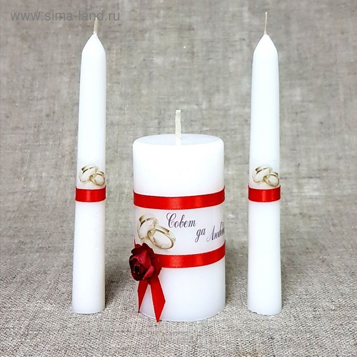 Набор свадебных свечей "Совет да любовь с розой"красный:родительские 1,8х15см;очаг 5х9,5см