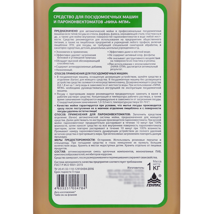 Средство для посудомоечных машин и пароконвектоматов"Ника-мпм", 1 л