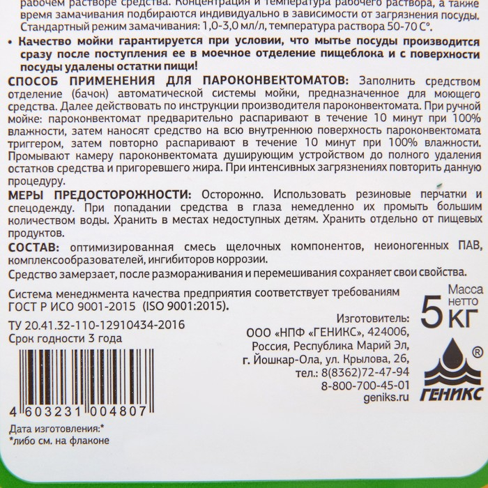 Средство для посудомоечных машин и пароконвектоматов"Ника-мпм", 5 л
