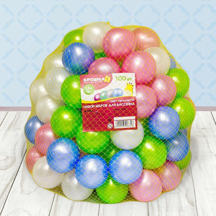 Шарики для сухого бассейна «Перламутровые», диаметр шара 7,5 см, набор 100 штук, цвет розовый, голубой, белый, зелёный