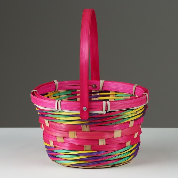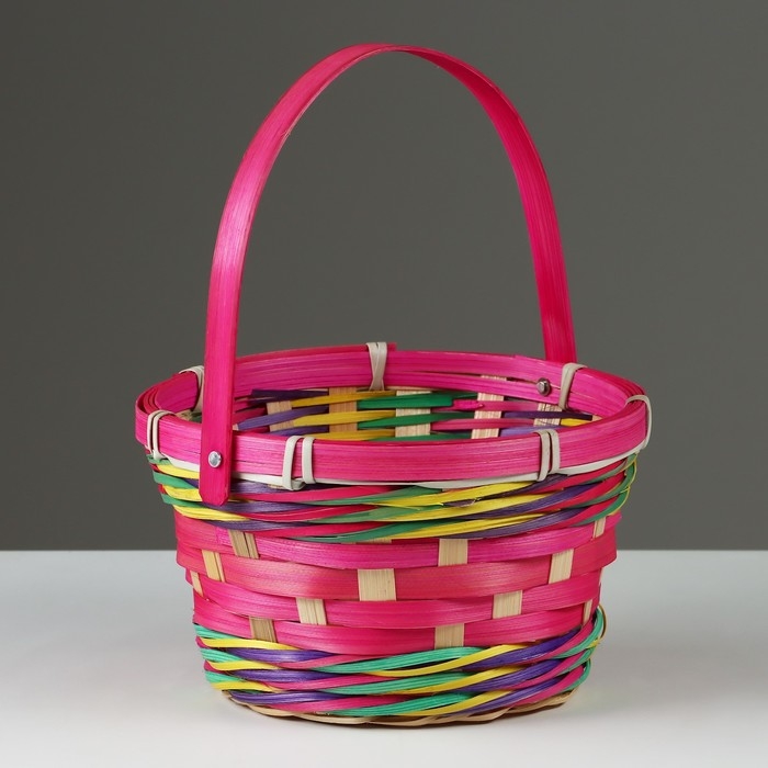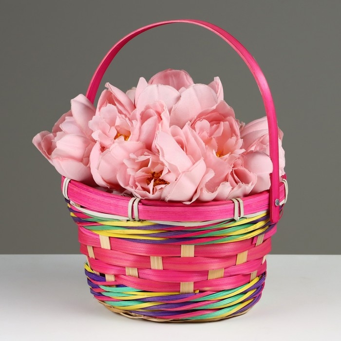 Корзина плетеная, D18 х 11 х 24 см, розовая, бамбук