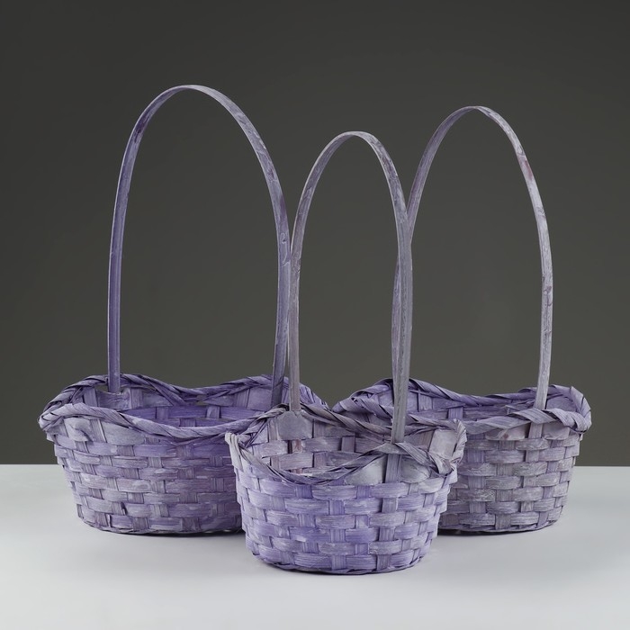 Набор корзин, 19х7,5х9,5/31 см, 22х9х11/34 см, 24х9х11,5/35 см, 3 шт, фиолетовые, бамбук