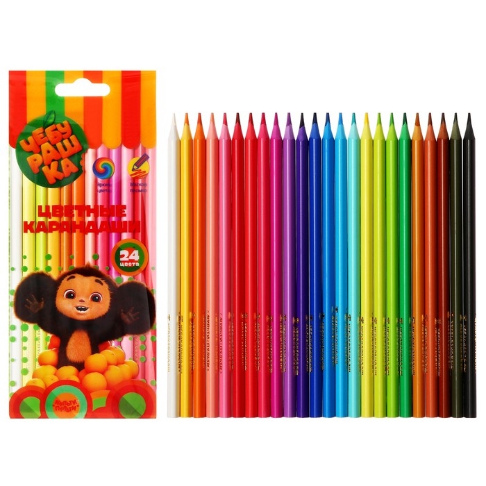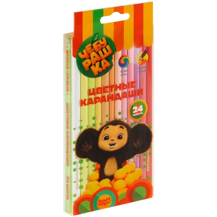 Карандаши цветные 24 цвета, пластиковые Мульти-Пульти "Чебурашка", заточенные, европодвес