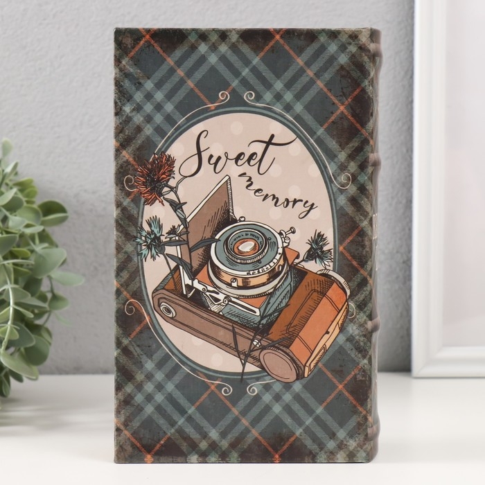Сейф-книга дерево кожзам "Ретро фотоаппарат с цветами" 21х13х5 см