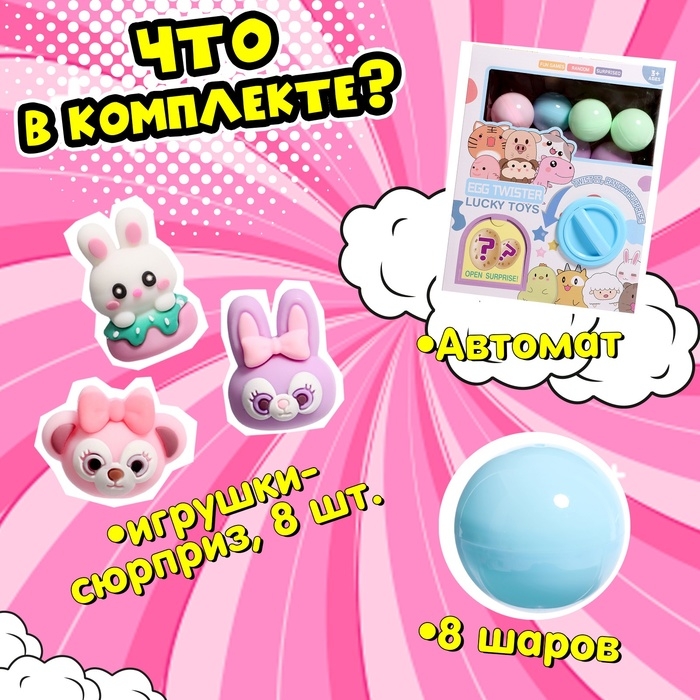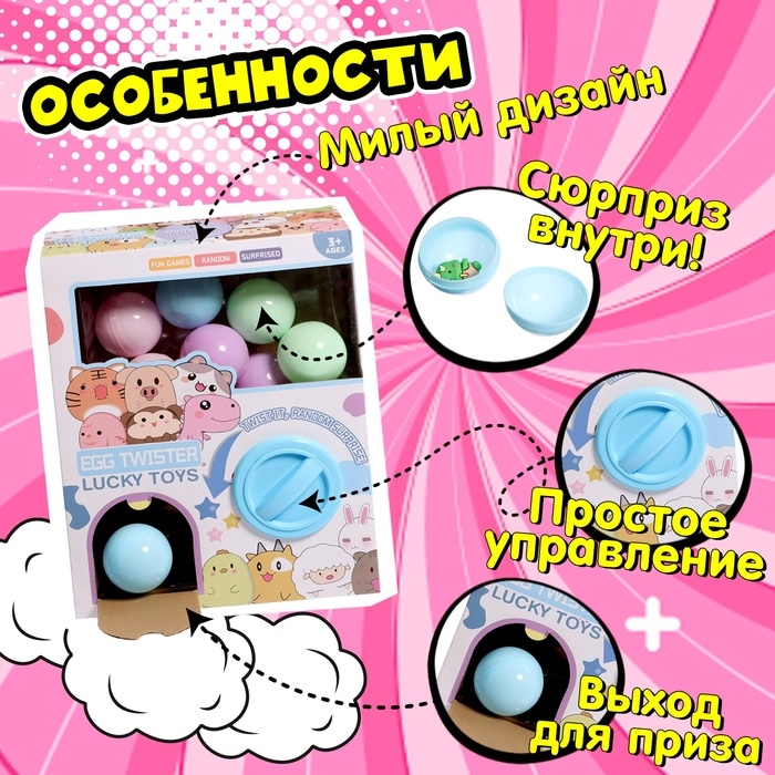 Детский игровой автомат «Сказочные зверята» с игрушками, в наборе 8 шаров-сюрпризов