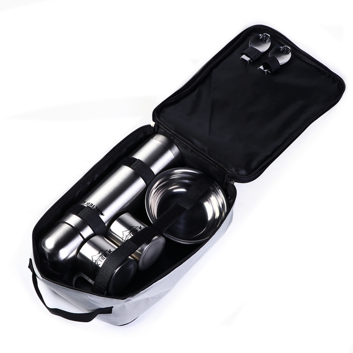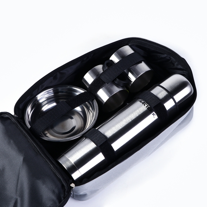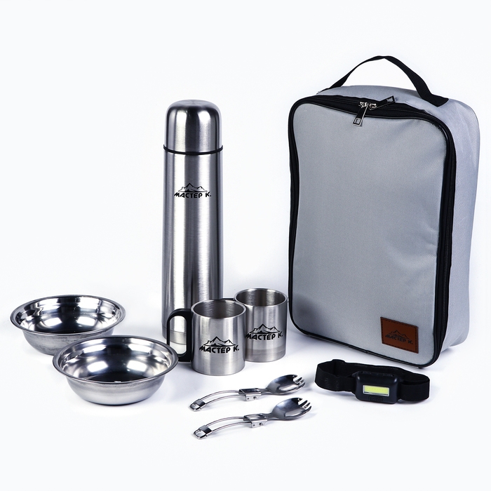 Набор "Мастер К.", 9 предметов: приборы на 2 персоны, термос 1 л, кружка 180 мл, фонарь