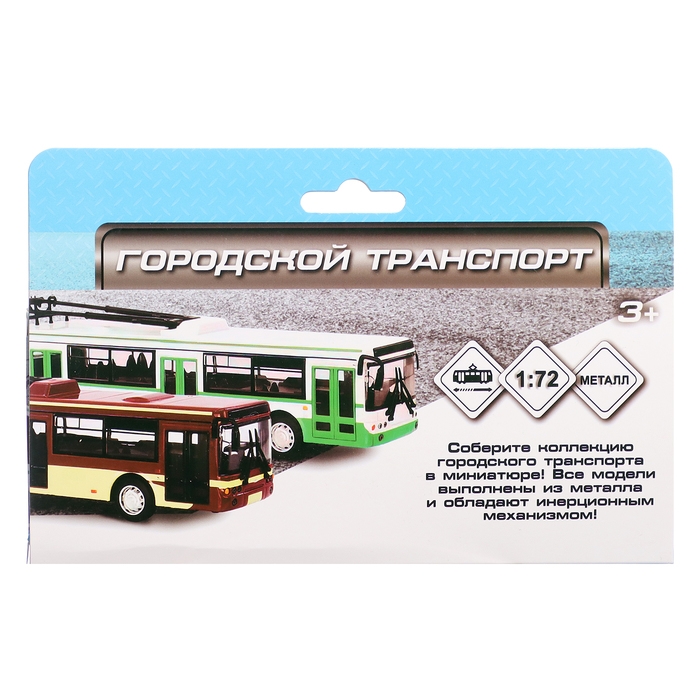 Троллейбус металлический, 1:72, инерционный, цвет бордовый
