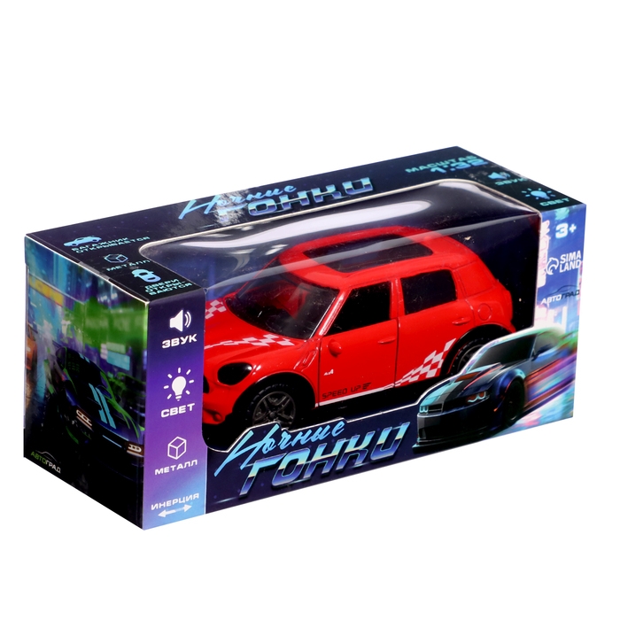 Машина металлическая «Ночные гонки», инерционная, 1:32, открываются двери, звуковые и световые эффекты, цвет красный