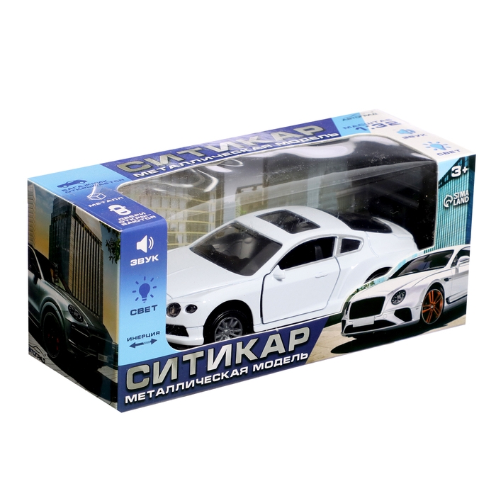 Машина металлическая «Купе», инерция, 1:32, открываются двери, световые и звуковые эффекты, цвет белый