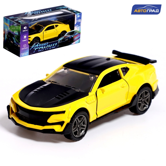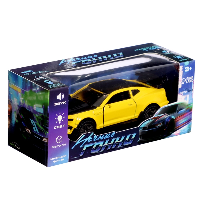 Машина металлическая «Ночные гонки», инерционная, 1:32, открываются двери, звуковые и световые эффекты, цвет жёлтый