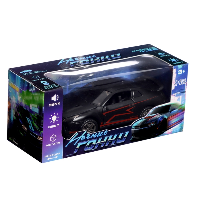Машина металлическая «Ночные гонки», инерционная, 1:32, открываются двери, звуковые и световые эффекты, цвет чёрный