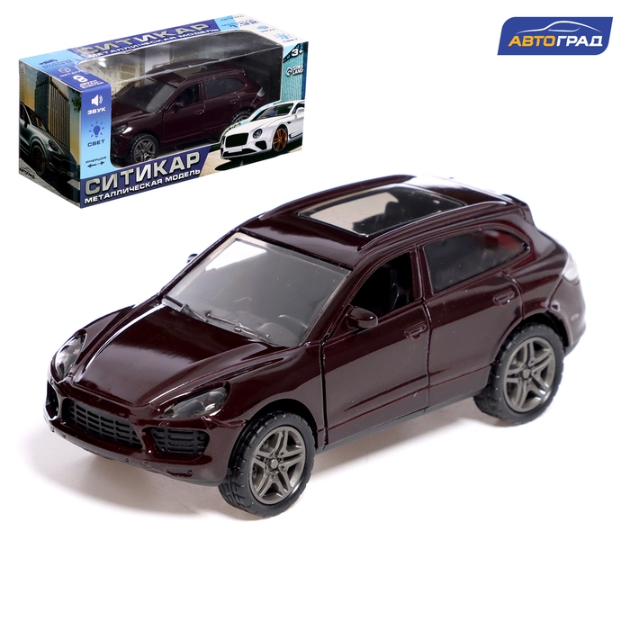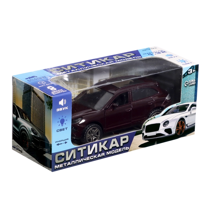 Машина металлическая «Каен», инерция, 1:32, открываются двери, световые и звуковые эффекты, цвет коричневый