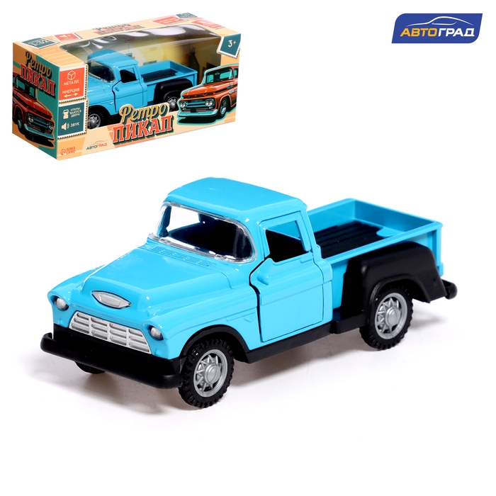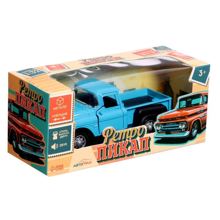 Машина металлическая «Пикап», инерция, 1:32, открываются двери, световые и звуковые эффекты, цвет синий