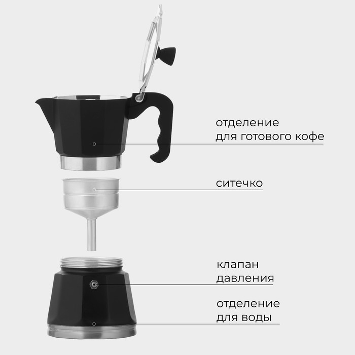 Кофеварка гейзерная с капучинатором Magistro Blackout, 2 предмета, 300 мл, цвет чёрный
