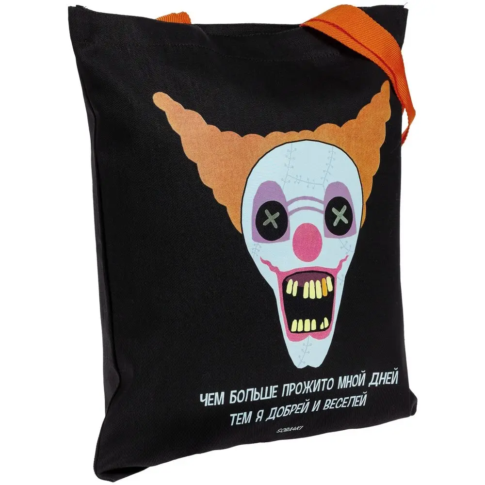 Холщовая сумка «Цирк», черная с оранжевыми ручками