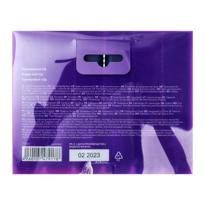 Набор маркеров-текстовыделителей 6 цветов, Berlingo, 5.0 мм, европодвес