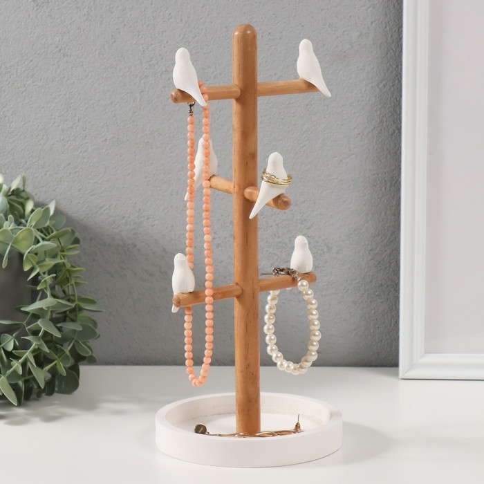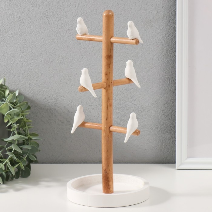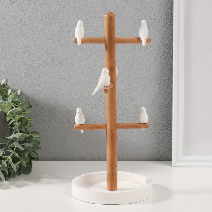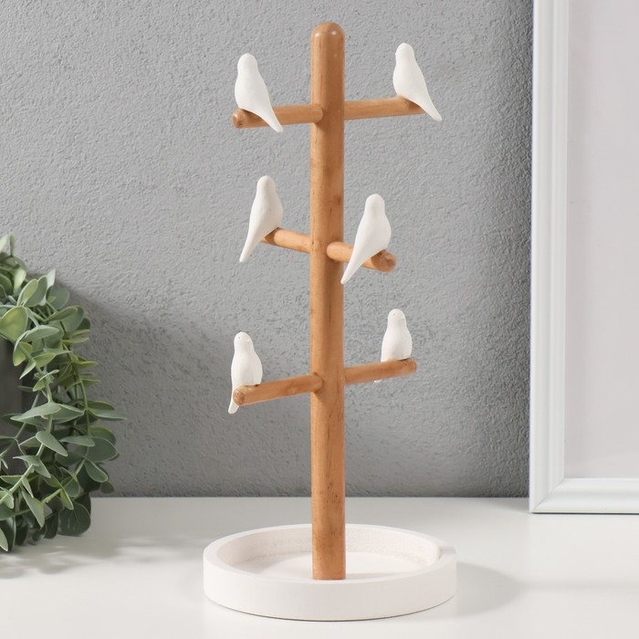 Сувенир дерево подставка для украшений "Птички на дереве" белый 13х13х29,5 см