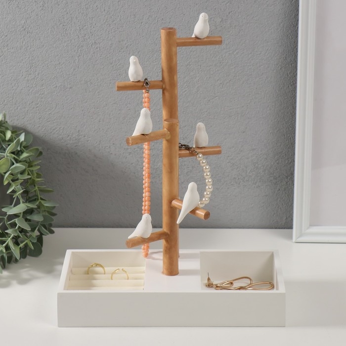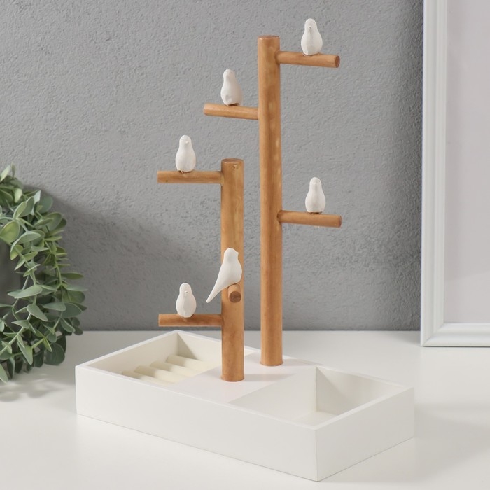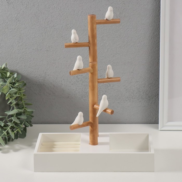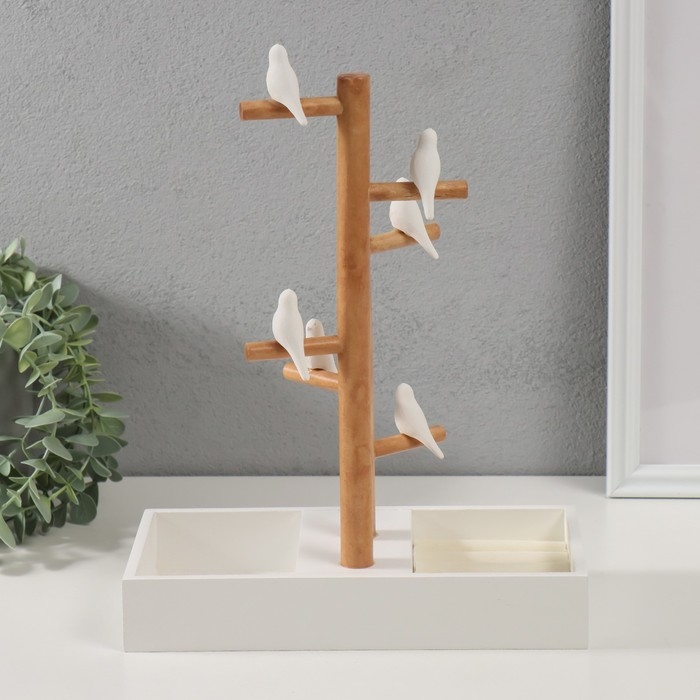 Сувенир дерево подставка для украшений "Птички на дереве" белый 24х12х32 см