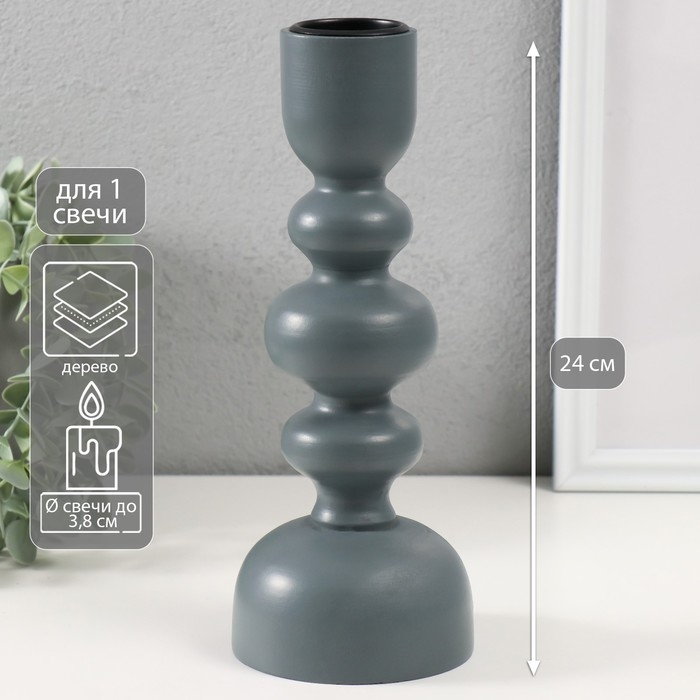 Подсвечник дерево на 1 свечу "Эллипсы" тёмно-серый 9,8х9,8х24 см