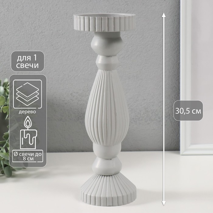 Подсвечник дерево на 1 свечу "Гофре" светло-серый 9,7х9,7х30,5 см