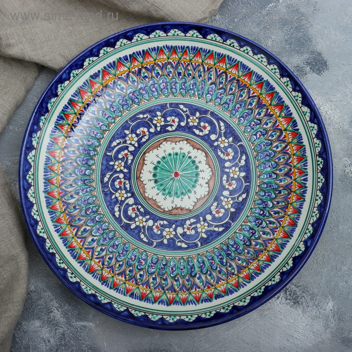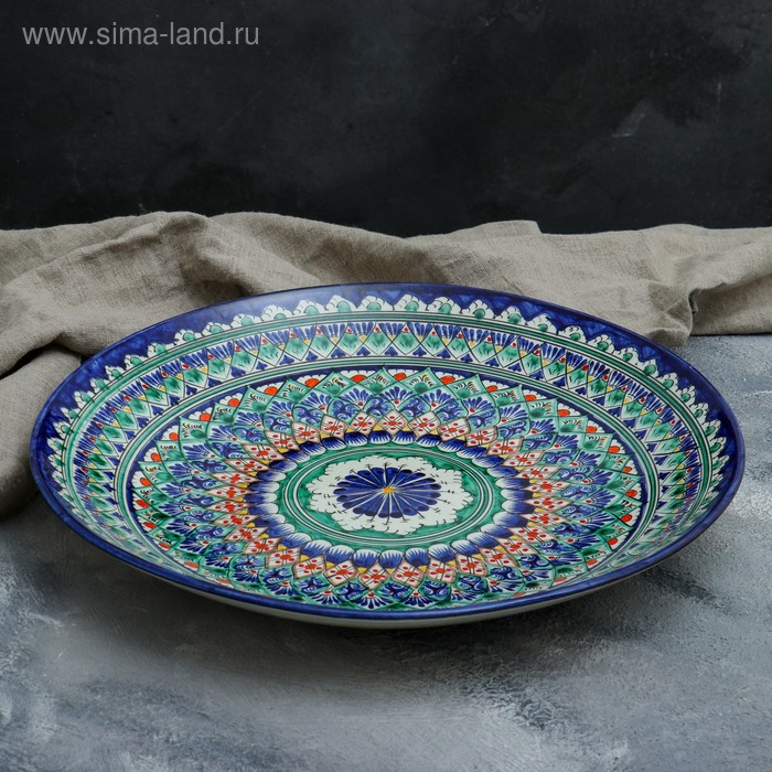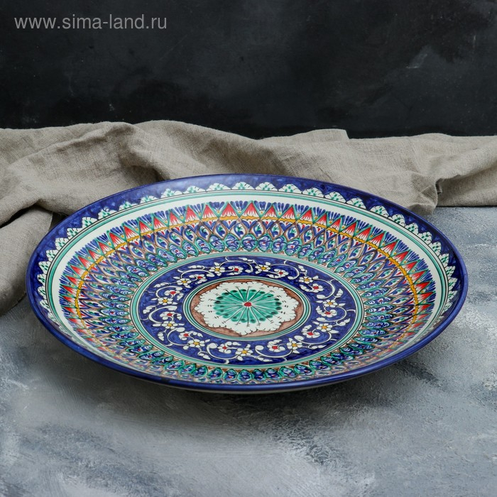 Ляган Риштанская Керамика "Узоры", 42 см, синий микс