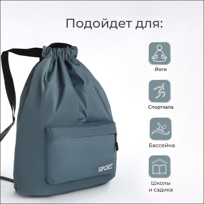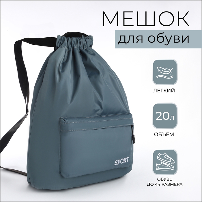 Мешок для обуви с карманом, цвет серый