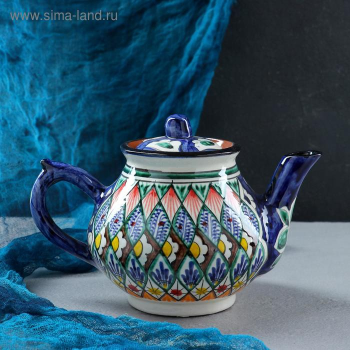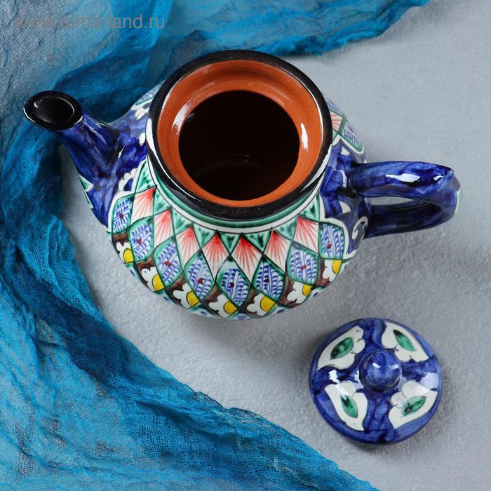 Чайник Риштанская Керамика "Цветы", 700 мл, синий микс