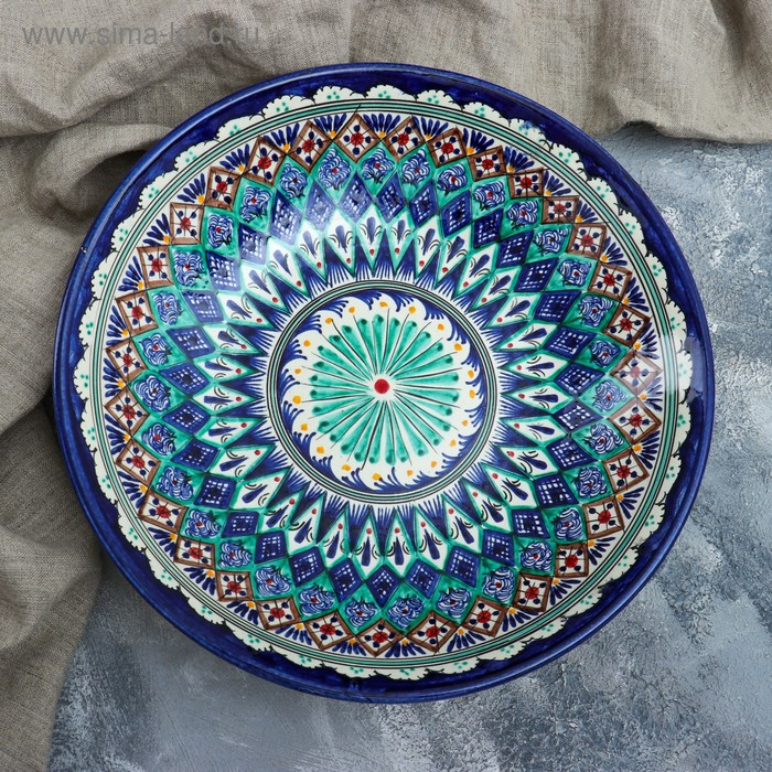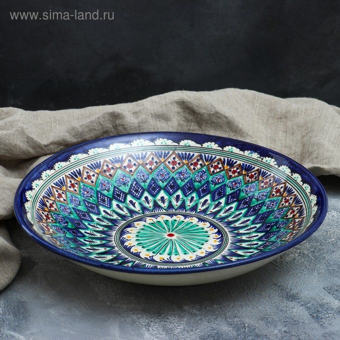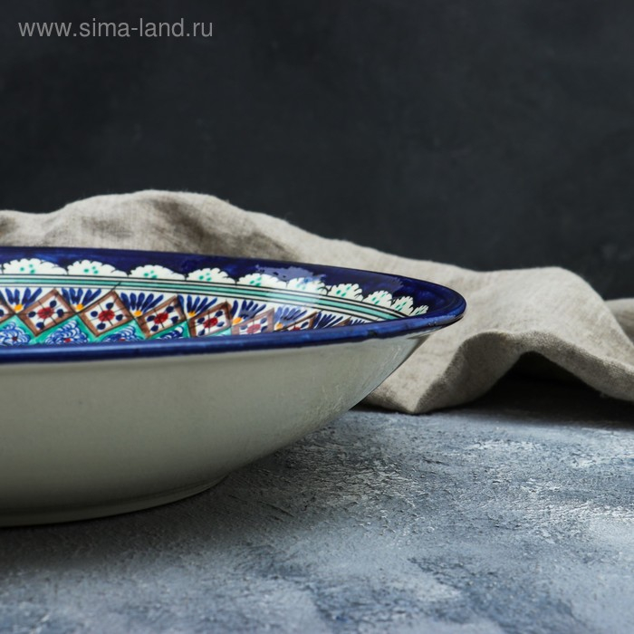 Ляган Риштанская Керамика "Узоры", 33 см, глубокий, синий