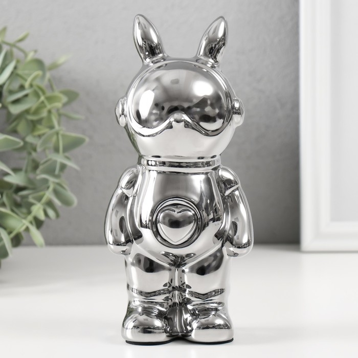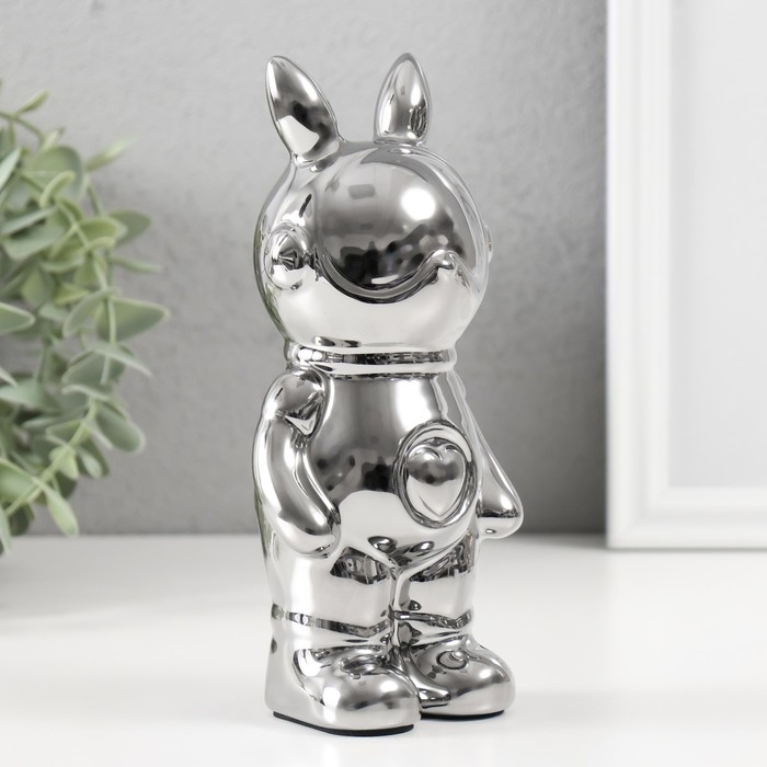 Копилка керамика "Кролик" серебро 6х8,5х18 см