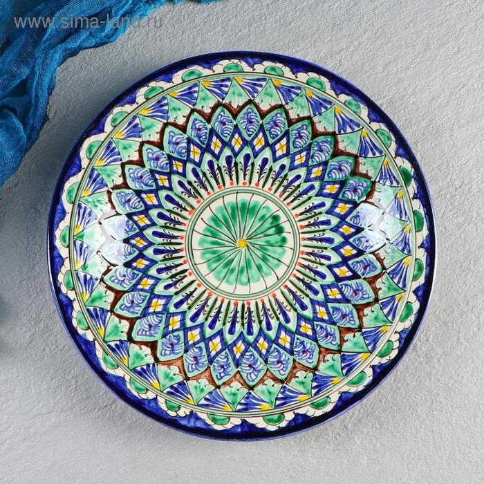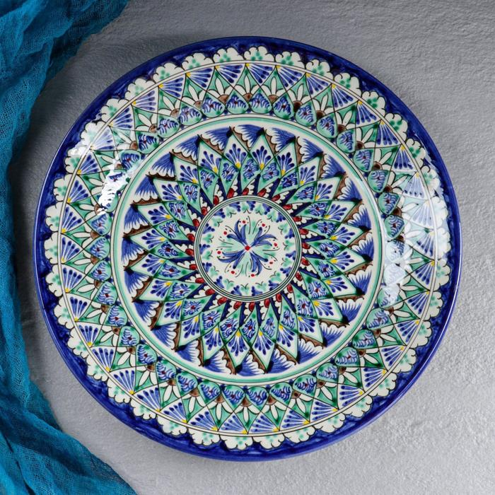 Тарелка Риштанская Керамика "Цветы", 27 см, синий