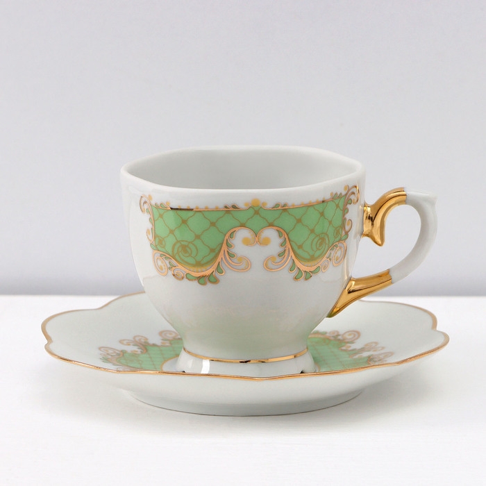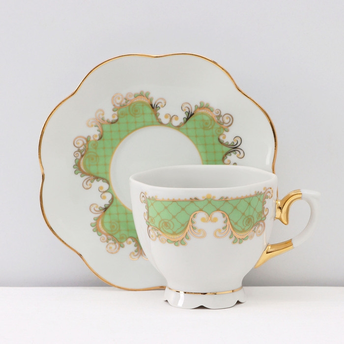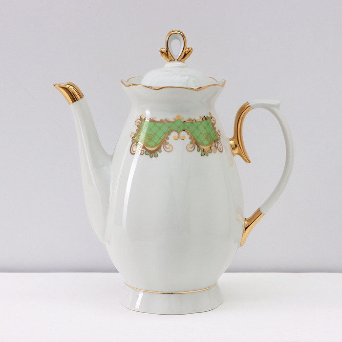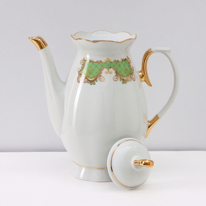 Сервиз кофейный фарфоровый «Симфония», 15 предметов: кофейник 800 мл, сахарница 400 мл, сливочник 180 мл, чашка кофейная 110 мл, блюдце d=12 см