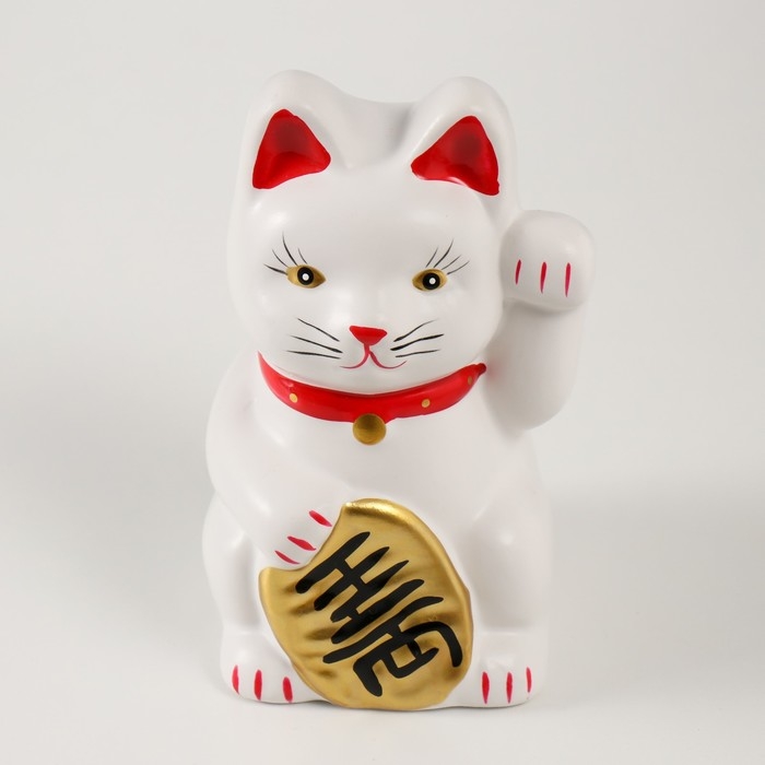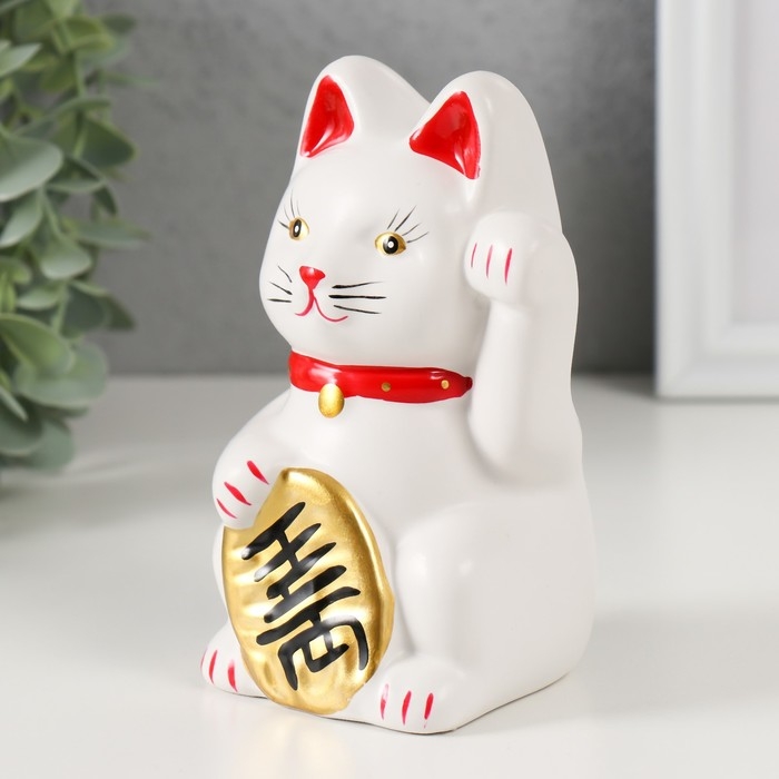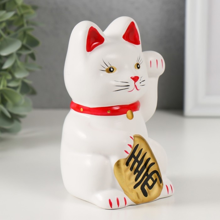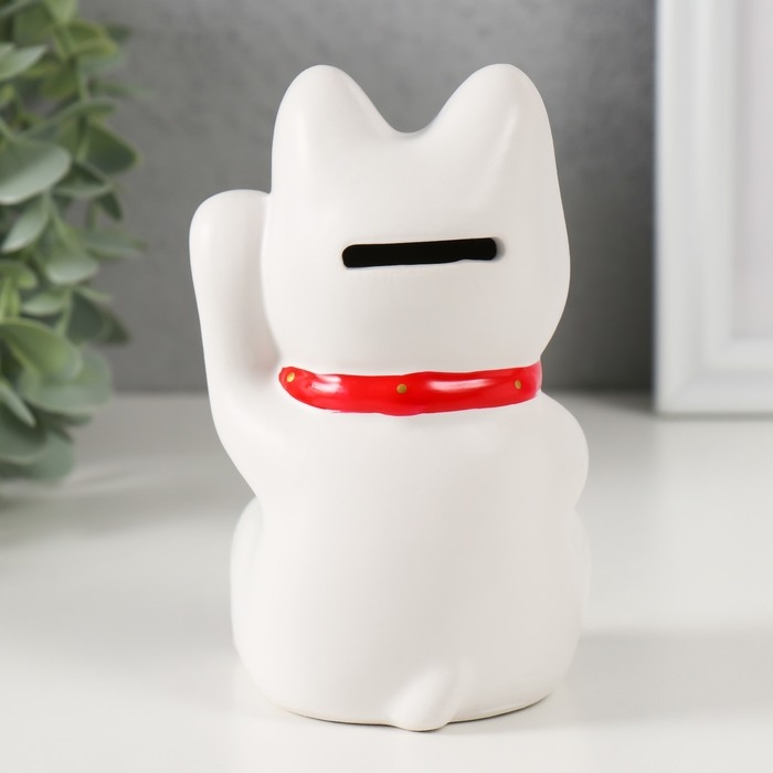 Копилка керамика "Белый кот Манэки-нэко с колокольчиком" 8х7,5х13 см
