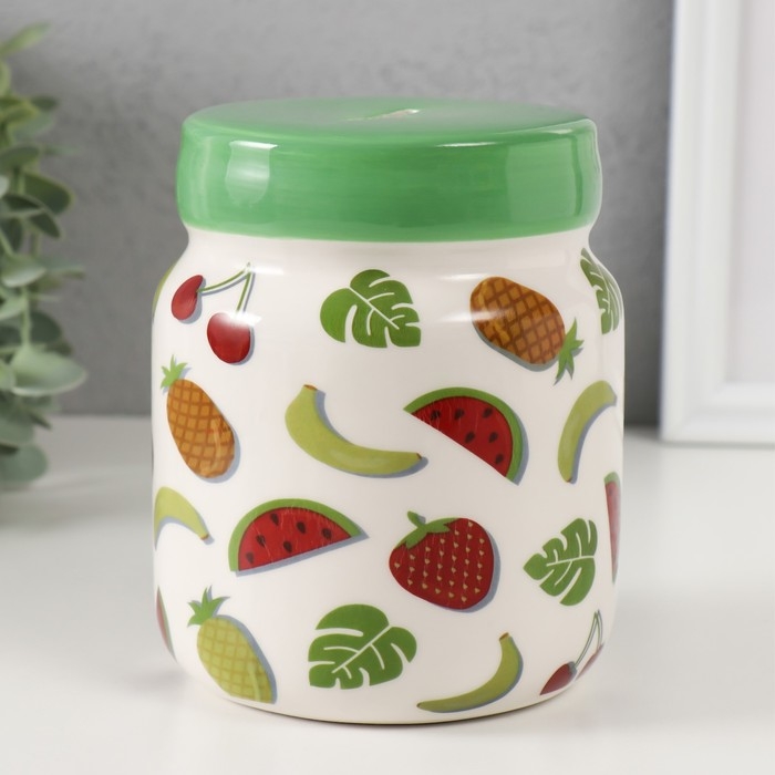 Копилка керамика "Банка с фруктиками" 11,5х11,5х14,3 см