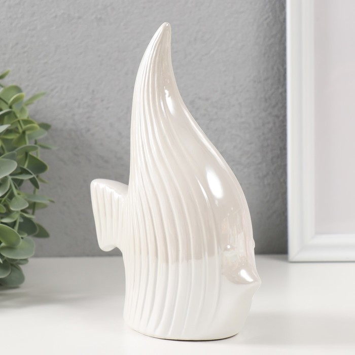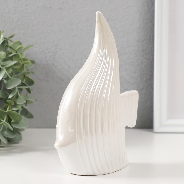 Копилка керамика "Рыбка скалярия" белый перламутр 12,5х6,3х18 см