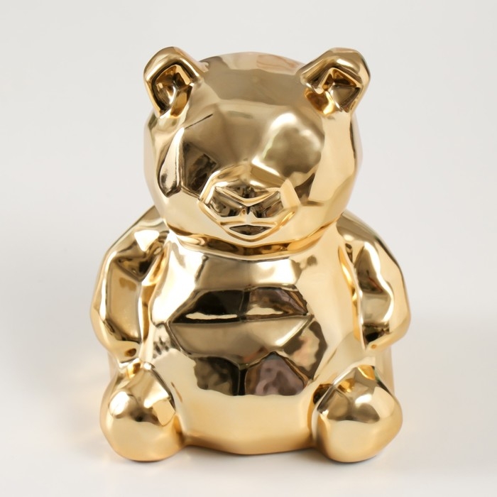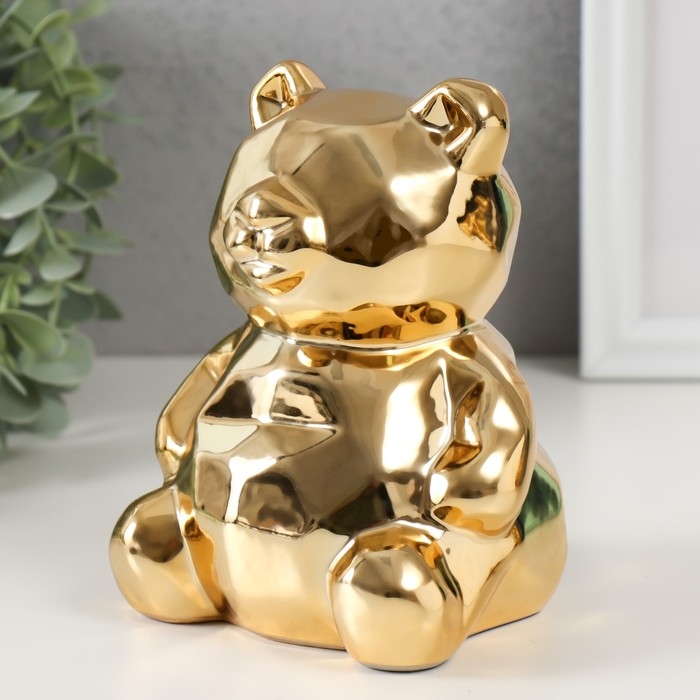 Копилка керамика "Медвежонок 3D грани" золото 11х9,5х14,3 см
