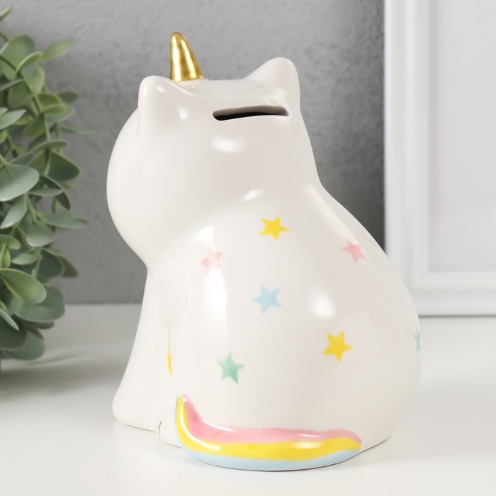 Копилка керамика "Котик-единорог" 13х10х16 см