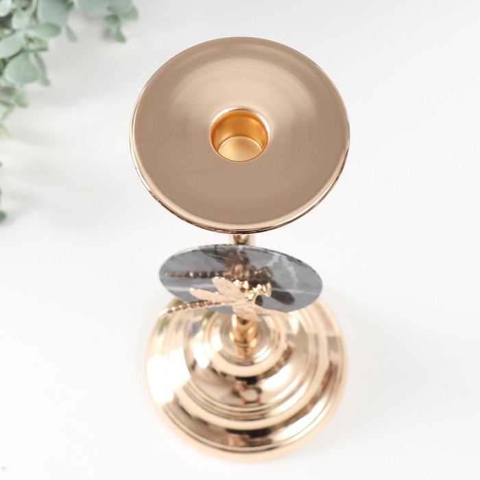 Подсвечник металл на 1 свечу d=2,2 см "Стрекоза" золото 11,5х11,5х29 см