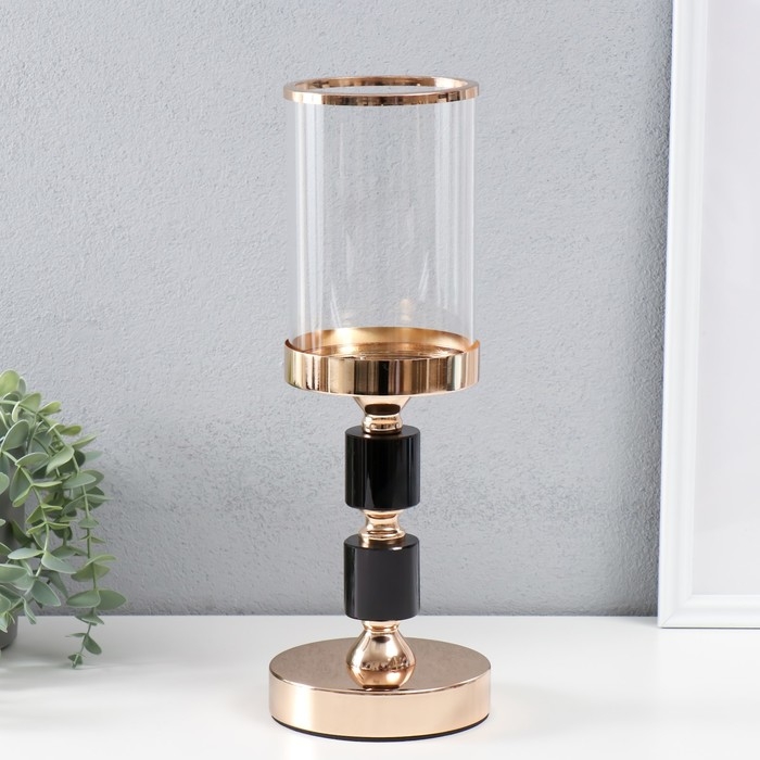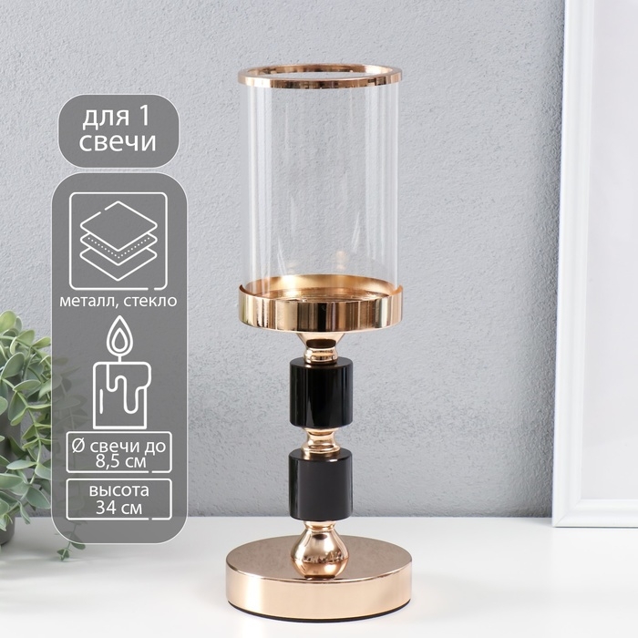 Подсвечник стекло, металл на 1 свечу "Глэдис" на магните d=8,5 см, золото 11,8х11,8х34 см