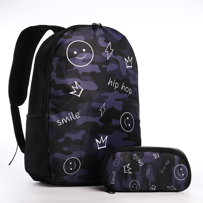 Рюкзак школьный с пеналом Hip-Hop, 42х28х13 см, цвет чёрный